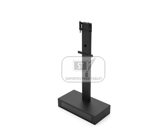 Cuenta con ranura pasa cables desde la pantalla hasta el gabinete, soporte para cámara de video conferencia con ajuste de altura, ventilas para la disipación de calor, puerta lateral, cerradura y rodamientos.
